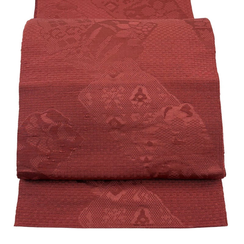 【名古屋帯】 赤系 茜色 優品 A 帯丈355cm以下 4000-7980 美品 二万以下