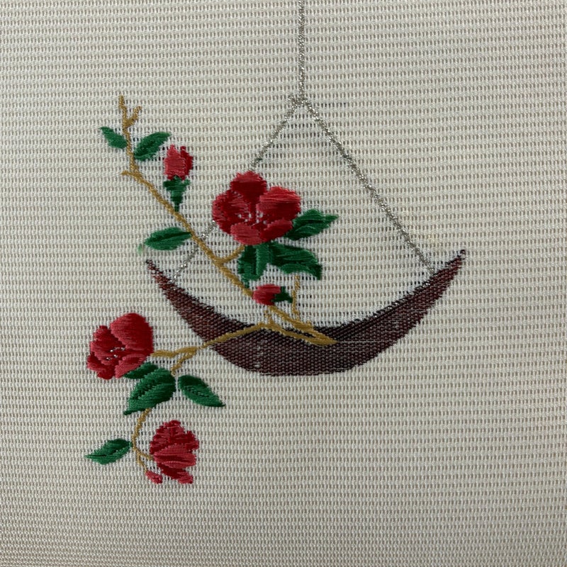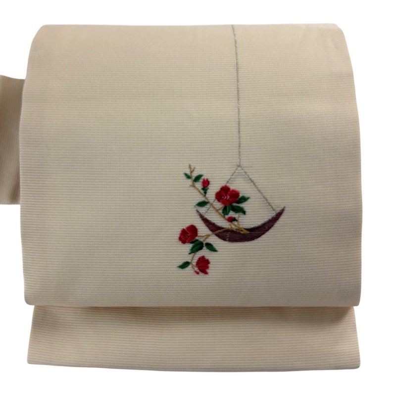 夏帯でございます。 セミフォーマルでお使いいただける名古屋帯でございます。 見る人に重たい印象を感じさせない女性ならではの、気品豊かな一品です。 締め跡がございます。 お太鼓垂先間に薄いシミ、前柄所々に刺繍糸のゆるみがございます。 リユース品としては良い状態で、まだまだご活用頂けると思われます。 ※なお、厳しく商品の状態確認を行っておりますが、記載の汚れ以外にも見落とし箇所がある可能性がある旨ご了承いただけますと幸いです。 沢山の商品の中からご覧いただき誠にありがとうございます。