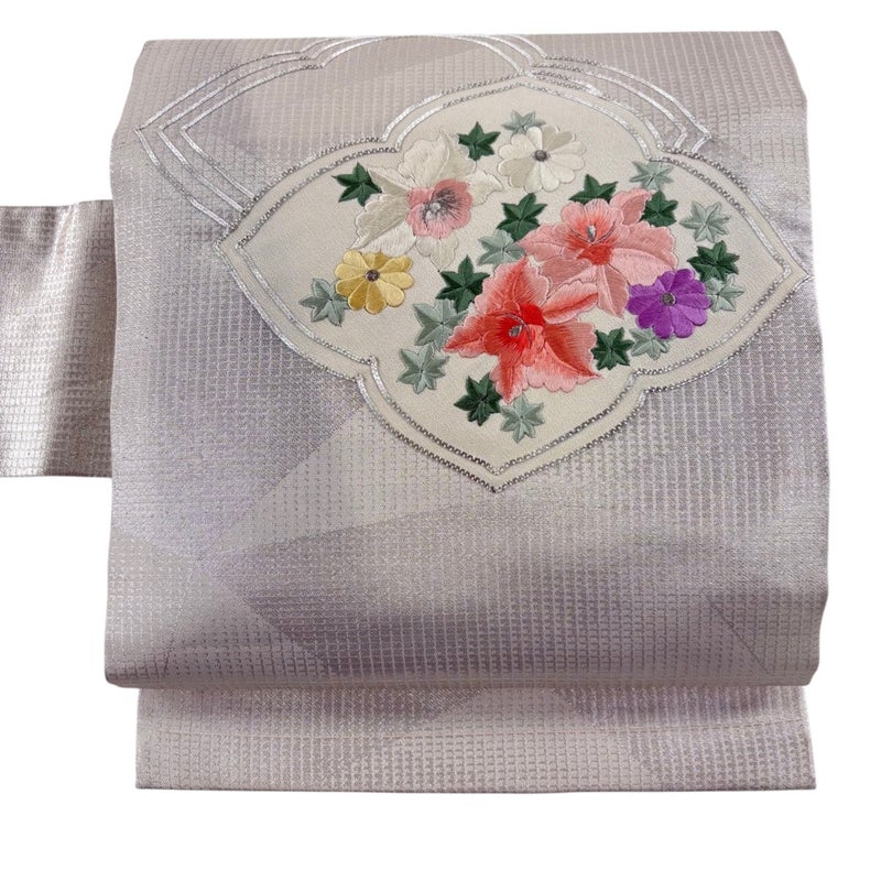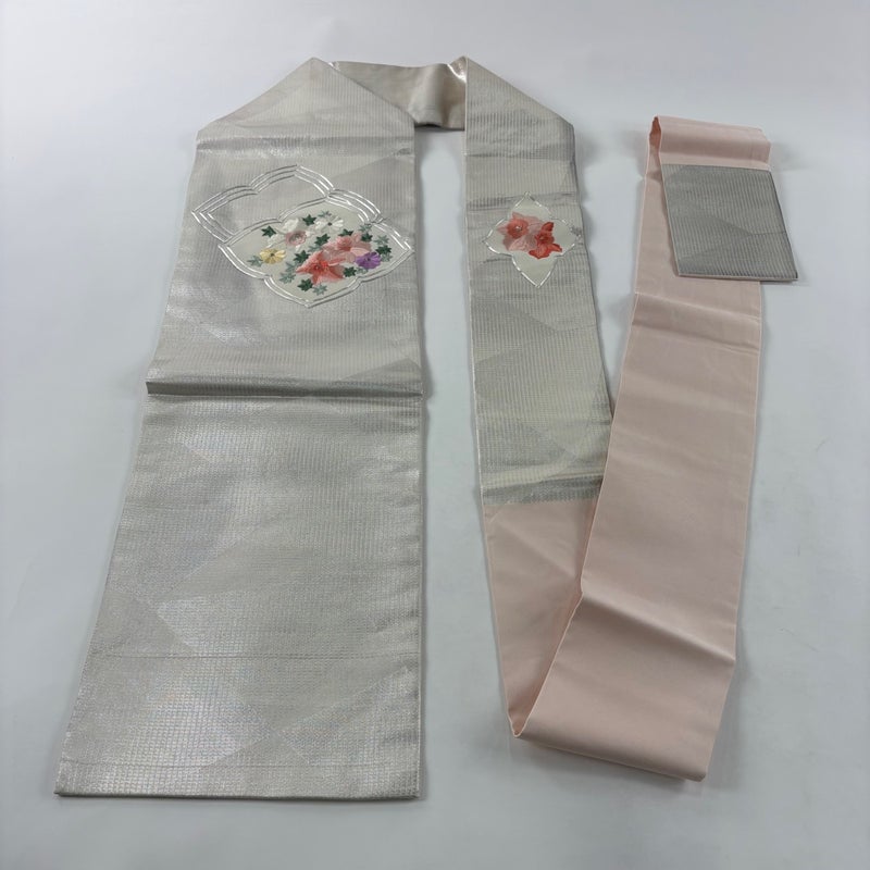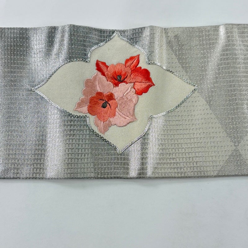 【名古屋帯】 金・銀系 銀色 優品 B 帯丈356cm~365cm -3980 二万以下