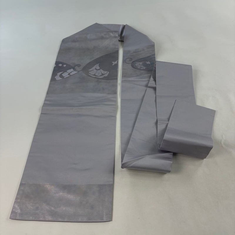 【名古屋帯】 灰色系 灰紫 優品 B 帯丈355cm以下 -3980 二万以下
