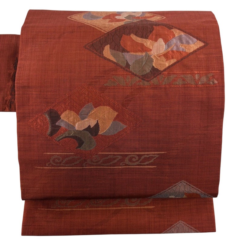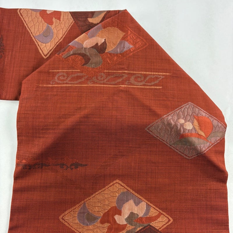 【名古屋帯】 赤系 赤茶 優品 A 帯丈356cm~365cm 4000-7980 美品 二万以下
