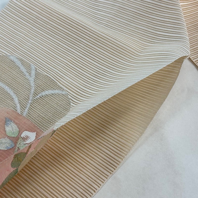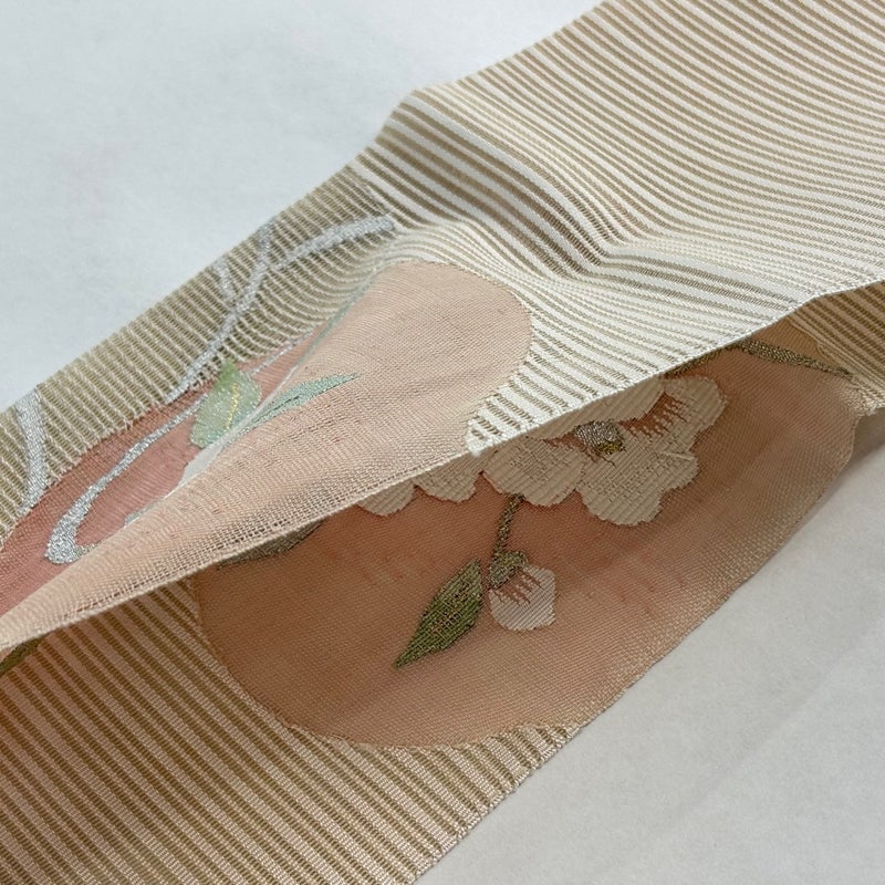 【着物ランク】秀品 【素材】正絹 【帯丈】約376cm 【帯幅】約31.5cm 【帯仕立て】仕立て上がり 【状態ランク】ランクB 【帯着用シーン】セミフォーマル(色無地・付下げ)