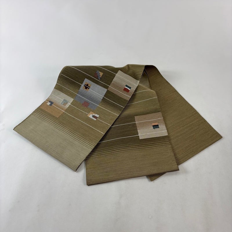 【名古屋帯】 茶系 茶緑色 秀品 A 帯丈366cm~400cm 9990-29990 美品 二万以下