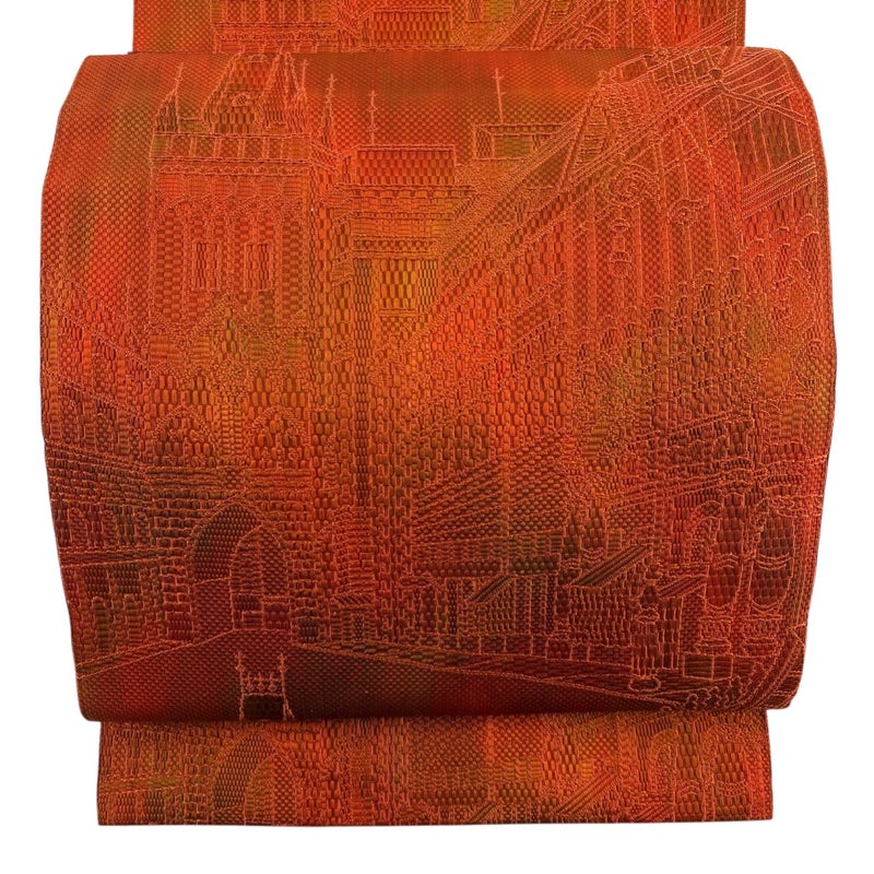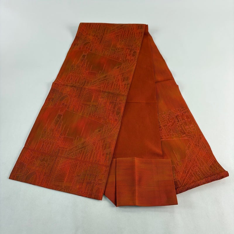 【名古屋帯】 赤系 朱色 秀品 A 帯丈355cm以下 9990-29990 美品 二万以下