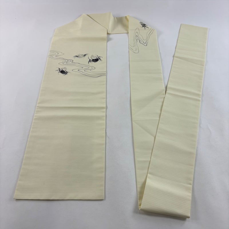 夏帯でございます。 普段使いでお使いいただける名古屋帯でございます。 カジュアルな装いに合わせてお使いください。 垂先にシミがございます。 リユース品としては良い状態で、まだまだご活用頂けると思われます。 ※なお、厳しく商品の状態確認を行っておりますが、記載の汚れ以外にも見落とし箇所がある可能性がある旨ご了承いただけますと幸いです。 沢山の商品の中からご覧いただき誠にありがとうございます。