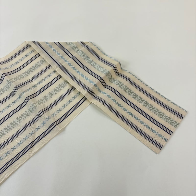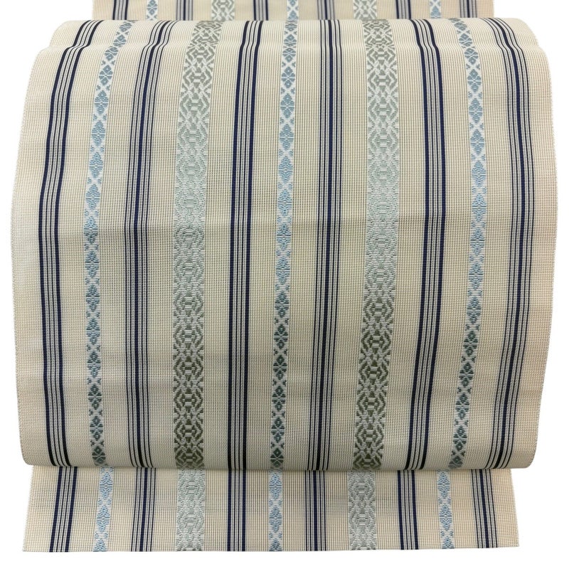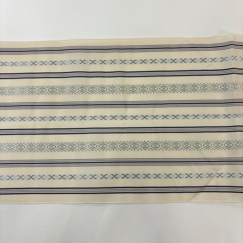 夏帯でございます。 普段使いでお使いいただける名古屋帯でございます。 カジュアルな装いに合わせてお使いください。 締め跡がございます。 前柄お太鼓間と手先前柄間にシワがございます。 リユース品としては目立った染み傷なく、状態の良いお品でございます。 ※なお、厳しく商品の状態確認を行っておりますが、記載の汚れ以外にも見落とし箇所がある可能性がある旨ご了承いただけますと幸いです。 沢山の商品の中からご覧いただき誠にありがとうございます。 【PR2】