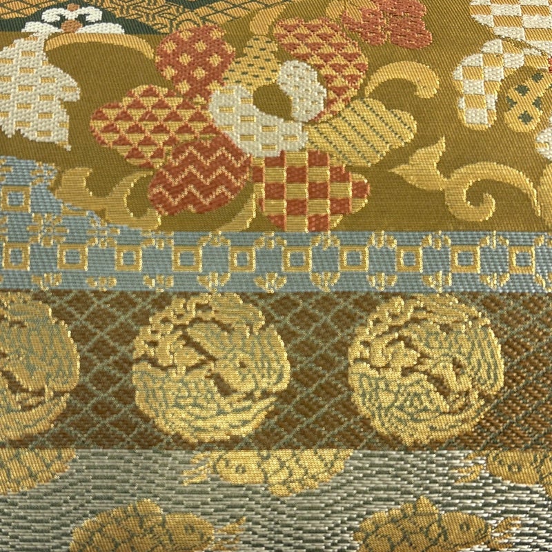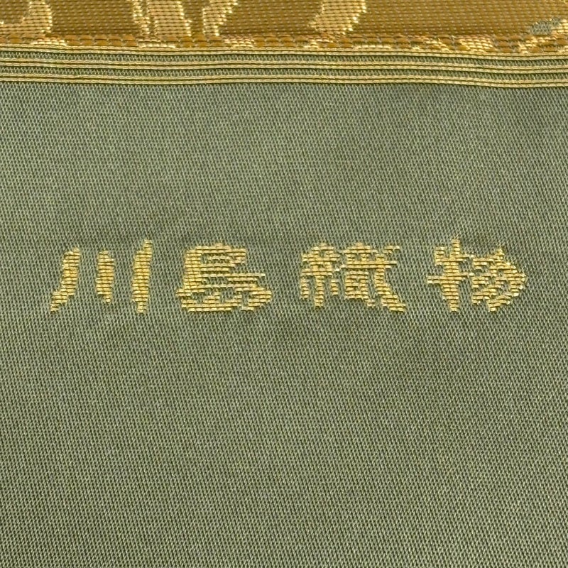 軍配マークと三本線が特徴の「川島織物」謹製の作品です。 セミフォーマルでお使いいただける名古屋帯でございます。 見る人に重たい印象を感じさせない女性ならではの、気品豊かな一品です。 リユース品としては目立った染み傷なく、状態の良いお品でございます。 ※なお、厳しく商品の状態確認を行っておりますが、記載の汚れ以外にも見落とし箇所がある可能性がある旨ご了承いただけますと幸いです。 沢山の商品の中からご覧いただき誠にありがとうございます。