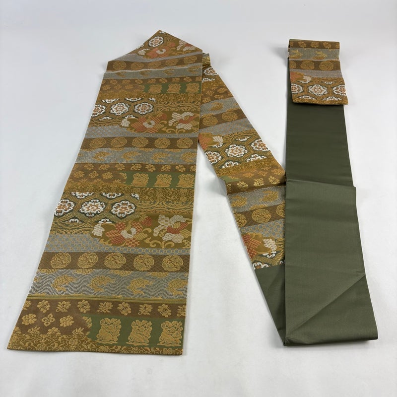 【着物ランク】逸品 【素材】正絹 【帯丈】約374.5cm 【帯幅】約31cm 【帯仕立て】仕立て上がり 【状態ランク】ランクA 【帯着用シーン】セミフォーマル(色無地・付下げ)