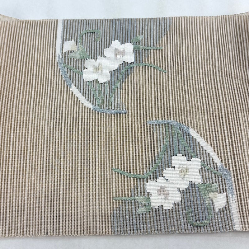 【名古屋帯】 白系 ベージュ 優品 A 帯丈366cm~400cm 4000-7980 美品 二万以下