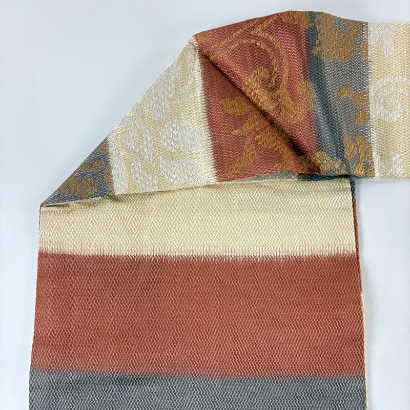 【着物ランク】秀品 【素材】正絹 【帯丈】約365.5cm 【帯幅】約30.5cm 【帯仕立て】仕立て上がり 【状態ランク】ランクA 【帯着用シーン】普段使いの洒落帯(紬・小紋)