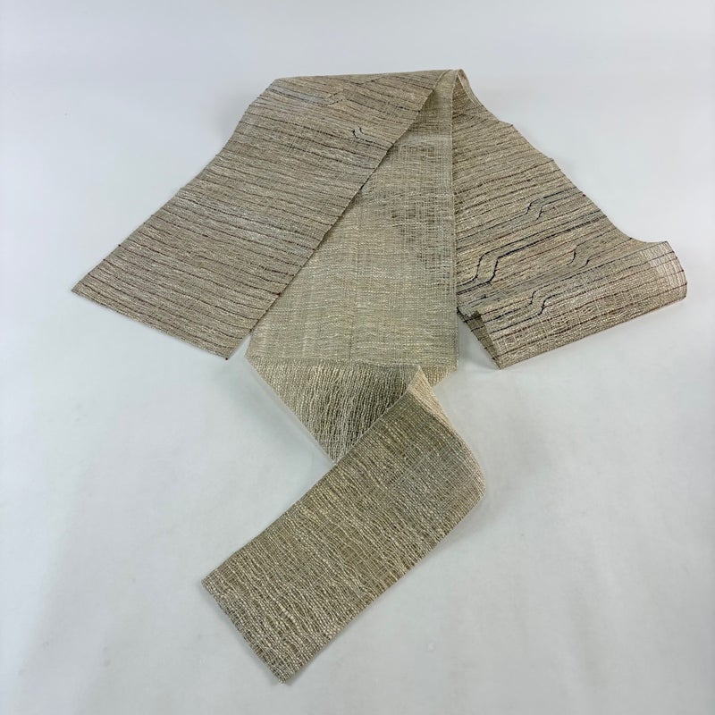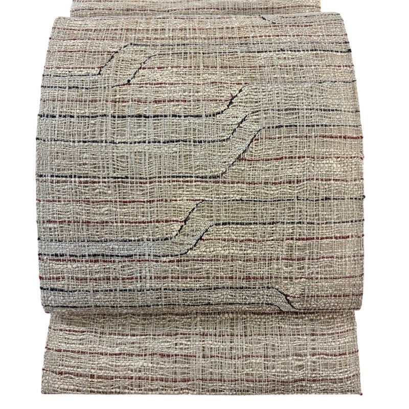 夏帯でございます。 普段使いでお使いいただける名古屋帯でございます。 カジュアルな装いに合わせてお使いください。 強い締め跡がございます。 前柄と前柄付近など所々にシミ、手先前柄間にシワがございます。 ご購入の際はその点ご留意ください。 ※なお、厳しく商品の状態確認を行っておりますが、記載の汚れ以外にも見落とし箇所がある可能性がある旨ご了承いただけますと幸いです。 沢山の商品の中からご覧いただき誠にありがとうございます。
