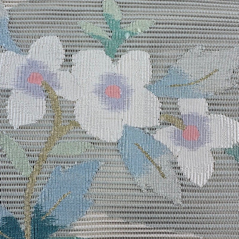 夏帯でございます。 セミフォーマルでお使いいただける名古屋帯でございます。 見る人に重たい印象を感じさせない女性ならではの、気品豊かな一品です。 締め跡がございます。 手先前柄間にシミ、垂境付近にシワがございます。 リユース品としては目立った染み傷なく、状態の良いお品でございます。 ※なお、厳しく商品の状態確認を行っておりますが、記載の汚れ以外にも見落とし箇所がある可能性がある旨ご了承いただけますと幸いです。 沢山の商品の中からご覧いただき誠にありがとうございます。
