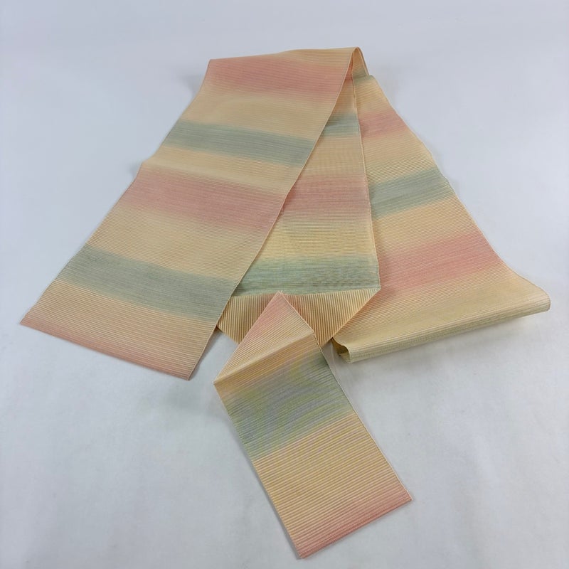 夏帯でございます。 普段使いでお使いいただける名古屋帯でございます。 カジュアルな装いに合わせてお使いください。 締め跡がございます。 リユース品としては目立った染み傷なく、状態の良いお品でございます。 ※なお、厳しく商品の状態確認を行っておりますが、記載の汚れ以外にも見落とし箇所がある可能性がある旨ご了承いただけますと幸いです。 沢山の商品の中からご覧いただき誠にありがとうございます。