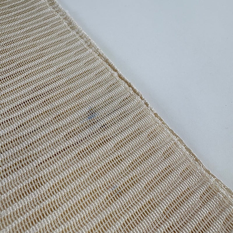 夏帯でございます。 セミフォーマルでお使いいただける名古屋帯でございます。 見る人に重たい印象を感じさせない女性ならではの、気品豊かな一品です。 締め跡がございます。 手先前柄間にシミ、垂先とお太鼓垂先間にシワがございます。 リユース品としては良い状態で、まだまだご活用頂けると思われます。 ※なお、厳しく商品の状態確認を行っておりますが、記載の汚れ以外にも見落とし箇所がある可能性がある旨ご了承いただけますと幸いです。 沢山の商品の中からご覧いただき誠にありがとうございます。