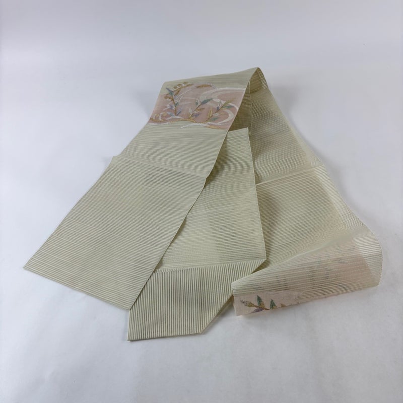 夏帯でございます。 セミフォーマルでお使いいただける名古屋帯でございます。 見る人に重たい印象を感じさせない女性ならではの、気品豊かな一品です。 お太鼓所々と前柄所々に金銀糸のゆるみや、糸ほつれがございます。 リユース品としては良い状態で、まだまだご活用頂けると思われます。 ※なお、厳しく商品の状態確認を行っておりますが、記載の汚れ以外にも見落とし箇所がある可能性がある旨ご了承いただけますと幸いです。 沢山の商品の中からご覧いただき誠にありがとうございます。