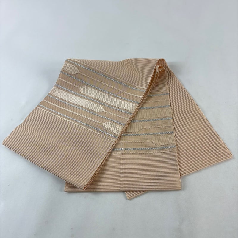 夏帯でございます。 セミフォーマルでお使いいただける名古屋帯でございます。 見る人に重たい印象を感じさせない女性ならではの、気品豊かな一品です。 強い締め跡がございます。 前柄付近にシミ、前柄お太鼓間に強いシワがございます。 リユース品としては良い状態で、まだまだご活用頂けると思われます。 ※なお、厳しく商品の状態確認を行っておりますが、記載の汚れ以外にも見落とし箇所がある可能性がある旨ご了承いただけますと幸いです。 沢山の商品の中からご覧いただき誠にありがとうございます。
