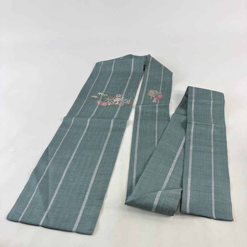 夏帯でございます。 セミフォーマルでお使いいただける名古屋帯でございます。 見る人に重たい印象を感じさせない女性ならではの、気品豊かな一品です。 垂先とお太鼓垂先間にシワがございます。 リユース品としては良い状態で、まだまだご活用頂けると思われます。 ※なお、厳しく商品の状態確認を行っておりますが、記載の汚れ以外にも見落とし箇所がある可能性がある旨ご了承いただけますと幸いです。 沢山の商品の中からご覧いただき誠にありがとうございます。