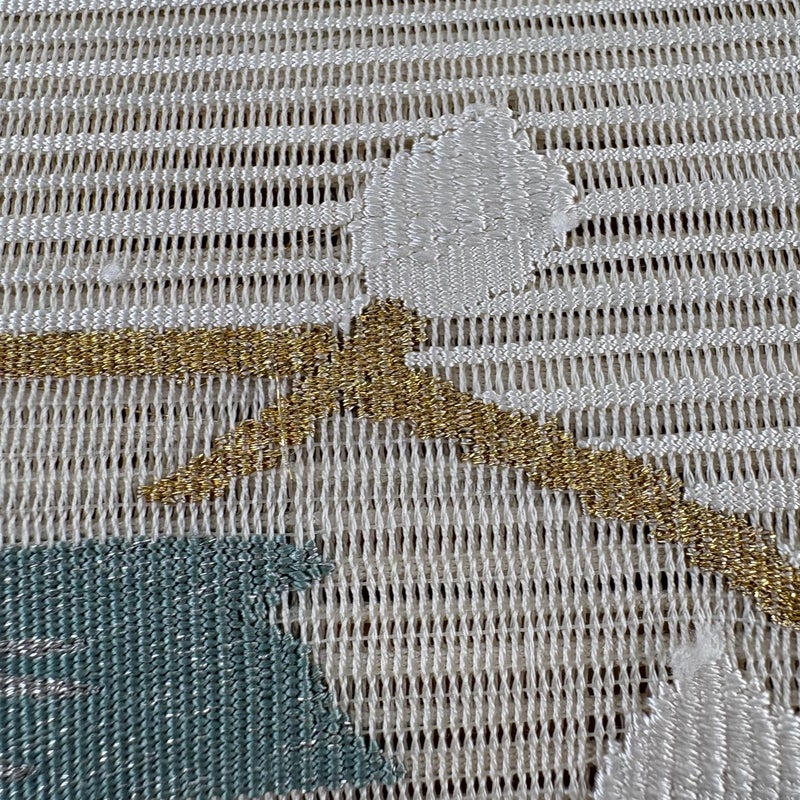 夏帯でございます。 セミフォーマルでお使いいただける名古屋帯でございます。 見る人に重たい印象を感じさせない女性ならではの、気品豊かな一品です。 締め跡がございます。 手先前柄間にシミ、前柄お太鼓間にシワ、お太鼓に金糸のほつれ、お太鼓所々と前柄所々に銀糸の変色がございます。 リユース品としては良い状態で、まだまだご活用頂けると思われます。 ※なお、厳しく商品の状態確認を行っておりますが、記載の汚れ以外にも見落とし箇所がある可能性がある旨ご了承いただけますと幸いです。 沢山の商品の中からご覧いただき誠にありがとうございます。