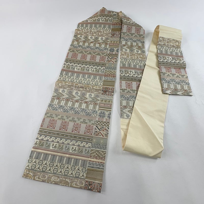 【名古屋帯】 白系 クリーム 名品 A 帯丈356cm~365cm 9990-29990 美品 二万以下