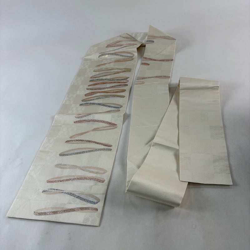 【名古屋帯】 白系 クリーム 秀品 A 帯丈356cm~365cm 9990-29990 美品 二万以下