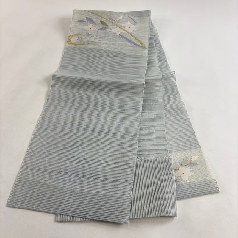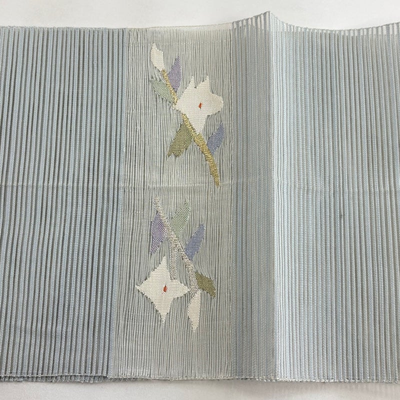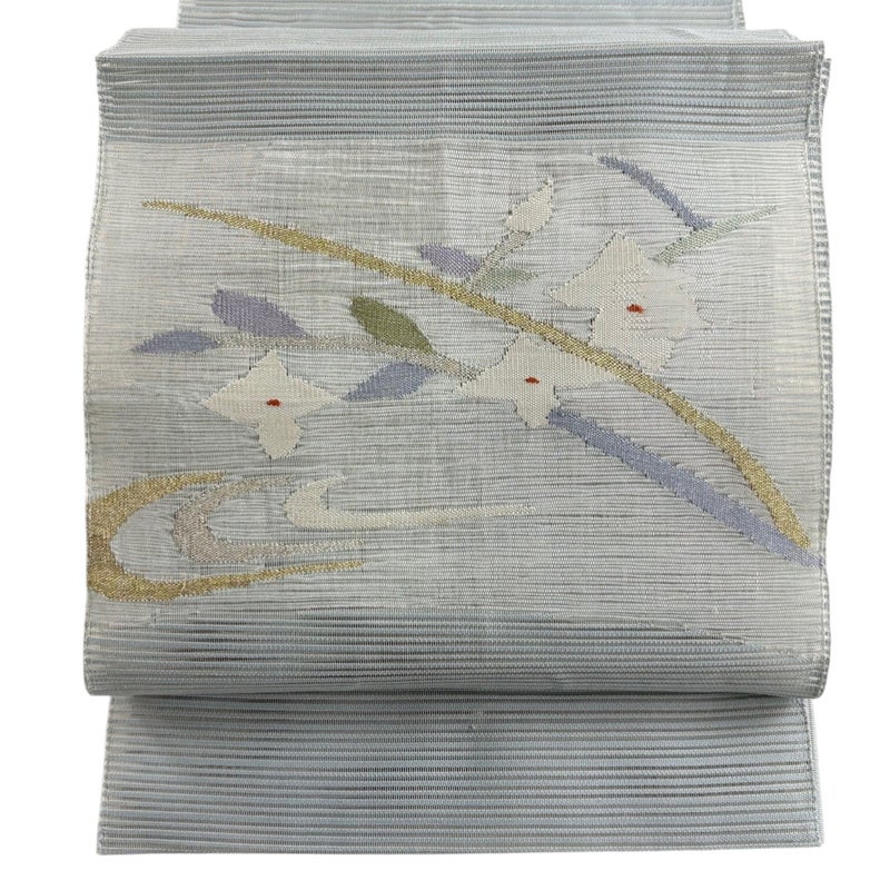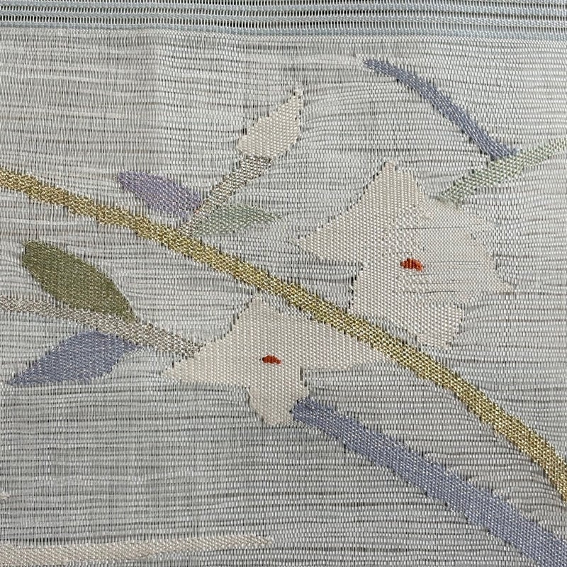 夏帯でございます。 セミフォーマルでお使いいただける名古屋帯でございます。 見る人に重たい印象を感じさせない女性ならではの、気品豊かな一品です。 強めの締め跡がございます。 前柄付近にシミがございます。 リユース品としては良い状態で、まだまだご活用頂けると思われます。 ※なお、厳しく商品の状態確認を行っておりますが、記載の汚れ以外にも見落とし箇所がある可能性がある旨ご了承いただけますと幸いです。 沢山の商品の中からご覧いただき誠にありがとうございます。