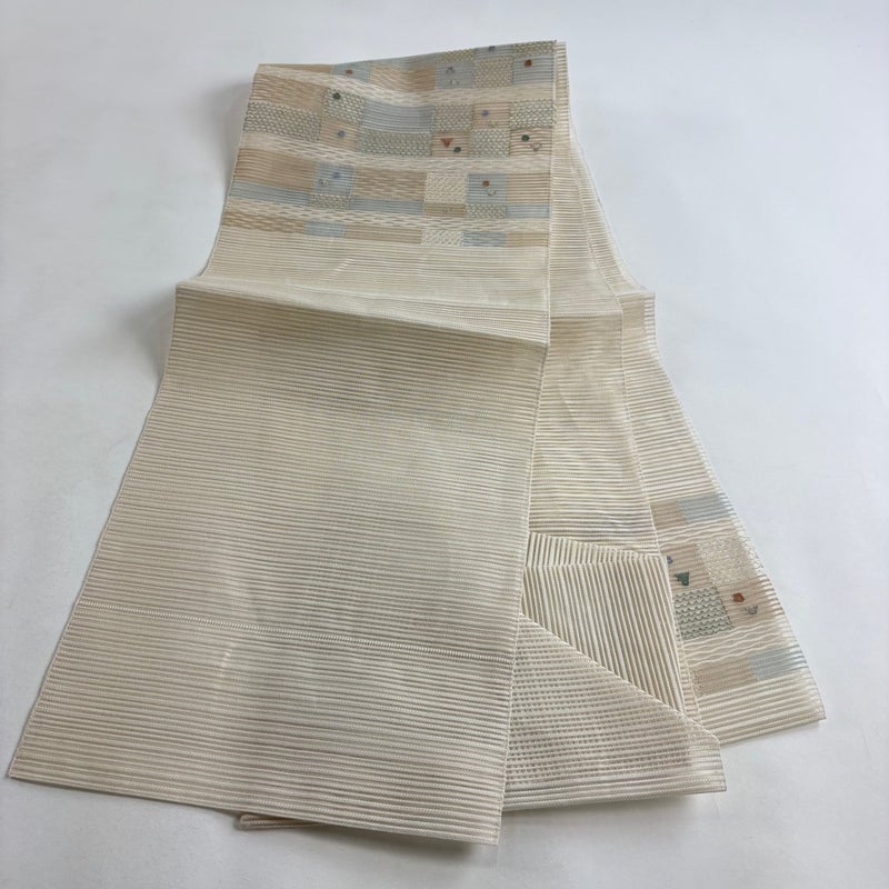 【名古屋帯】 白系 ベージュ 秀品 A 9990-29990 美品 二万以下