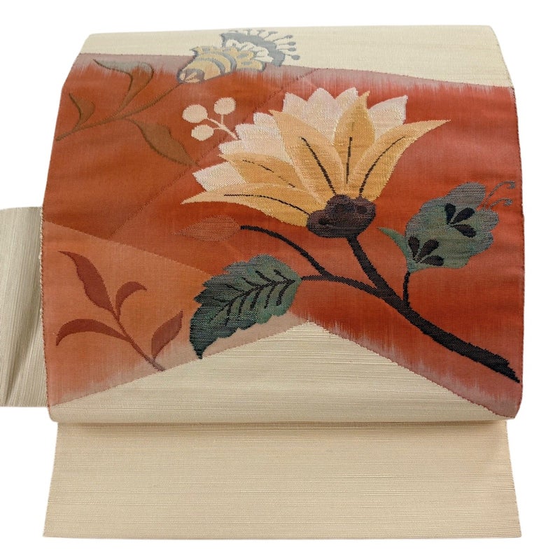 【名古屋帯】 赤系 サーモンピンク 優品 A 帯丈355cm以下 4000-7980 美品 二万以下