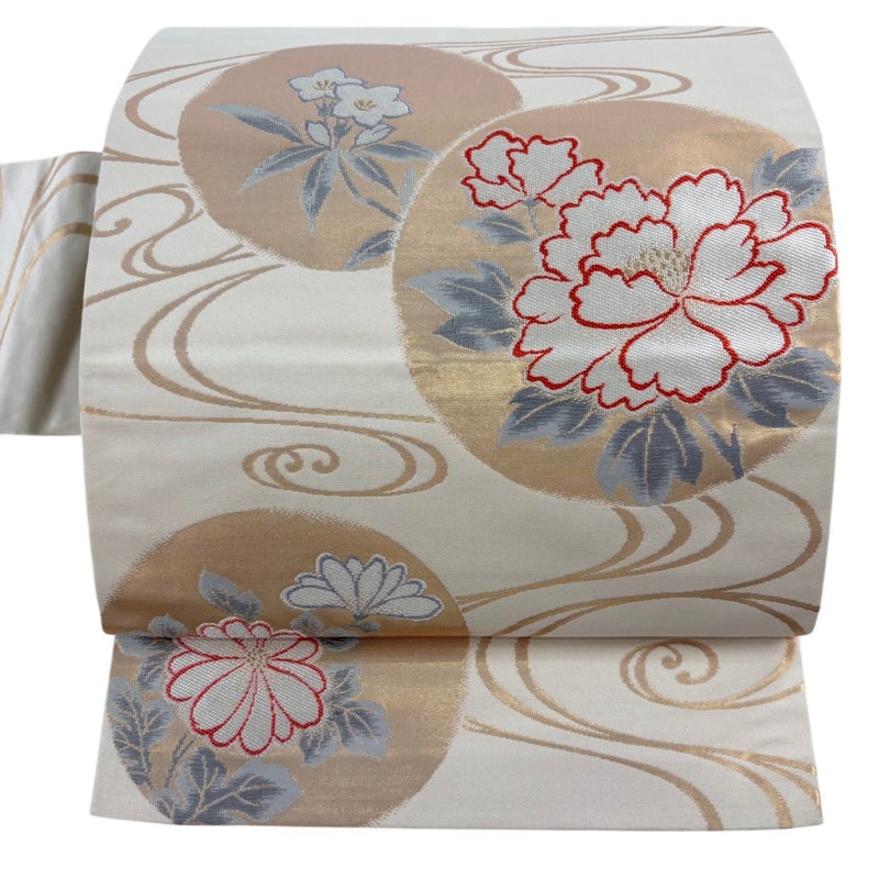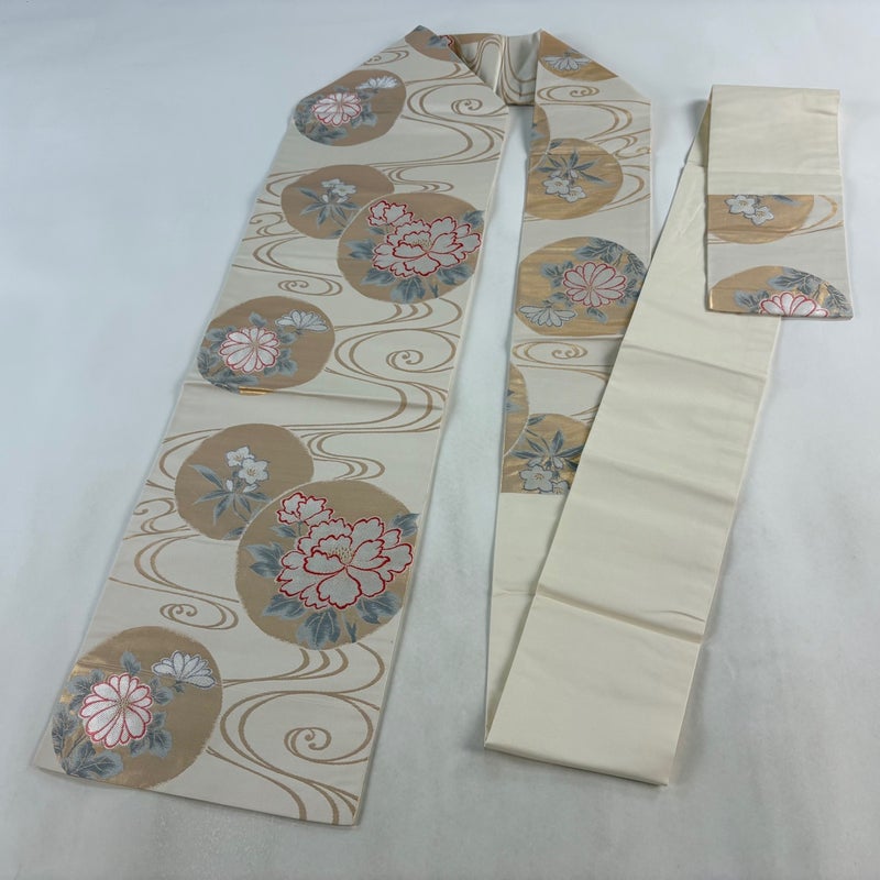 【名古屋帯】 白系 クリーム 優品 B 帯丈355cm以下 -3980 二万以下