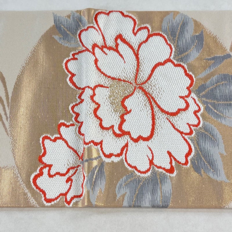 セミフォーマルでお使いいただける名古屋帯でございます。 見る人に重たい印象を感じさせない女性ならではの、気品豊かな一品です。 締め跡がございます。 表地所々に生地のヨレがございます。 リユース品としては良い状態で、まだまだご活用頂けると思われます。 ※なお、厳しく商品の状態確認を行っておりますが、記載の汚れ以外にも見落とし箇所がある可能性がある旨ご了承いただけますと幸いです。 沢山の商品の中からご覧いただき誠にありがとうございます。
