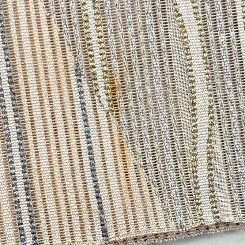 夏帯でございます。 セミフォーマルでお使いいただける名古屋帯でございます。 見る人に重たい印象を感じさせない女性ならではの、気品豊かな一品です。 締め跡がございます。 前柄にシミ、前柄付近に薄いシミがございます。 裏地所々にシミがございます。 リユース品としては良い状態で、まだまだご活用頂けると思われます。 ※なお、厳しく商品の状態確認を行っておりますが、記載の汚れ以外にも見落とし箇所がある可能性がある旨ご了承いただけますと幸いです。 沢山の商品の中からご覧いただき誠にありがとうございます。