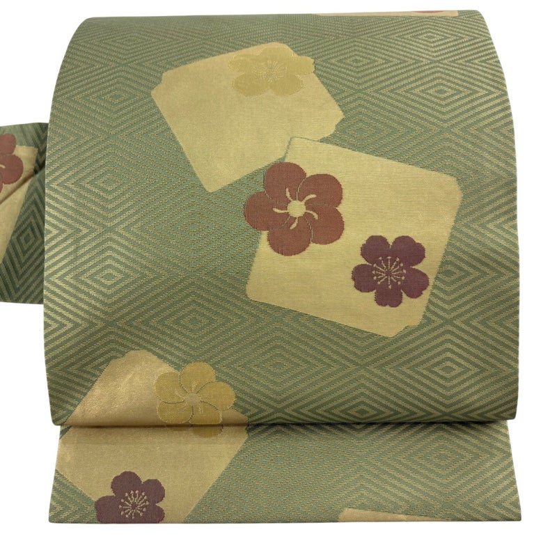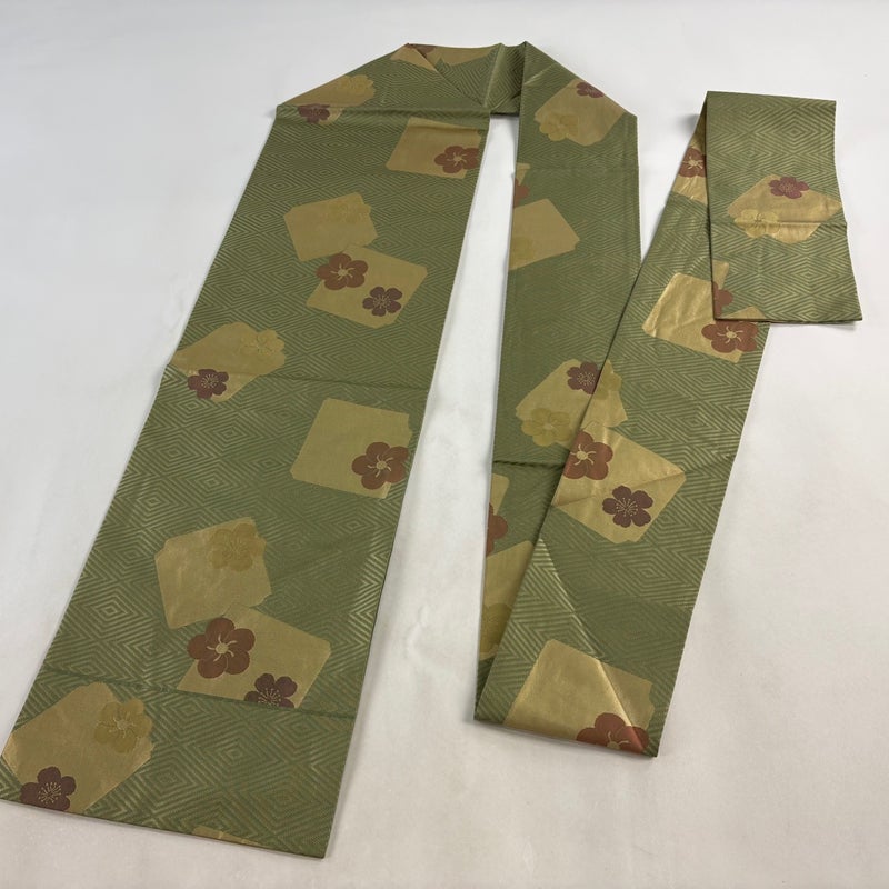 【名古屋帯】 緑系 よもぎ色 秀品 B 帯丈355cm以下 7990-9980 二万以下
