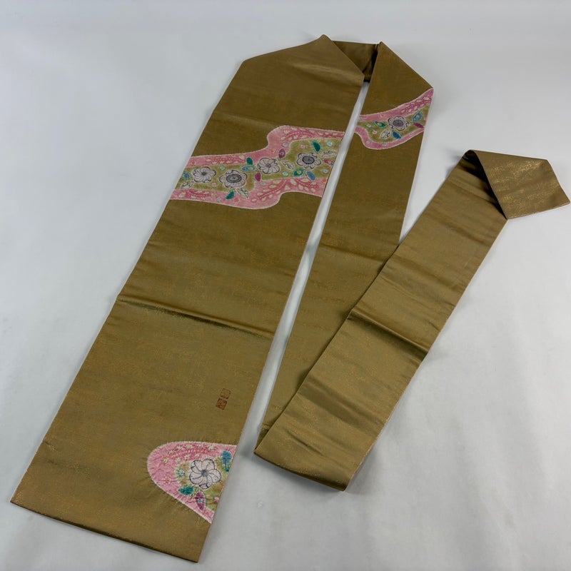 【着物ランク】秀品 【素材】正絹 【帯丈】約363.5cm 【帯幅】約30.5cm 【帯仕立て】仕立て上がり 【状態ランク】ランクB 【帯着用シーン】セミフォーマル(色無地・付下げ)
