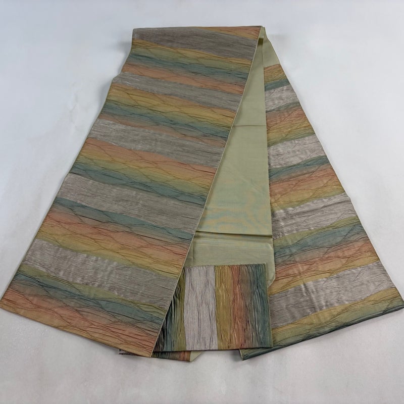 【着物ランク】秀品 【素材】正絹 【帯丈】約364.5cm 【帯幅】約31.5cm 【帯仕立て】仕立て上がり 【状態ランク】ランクB 【帯着用シーン】普段使いの洒落帯(紬・小紋)