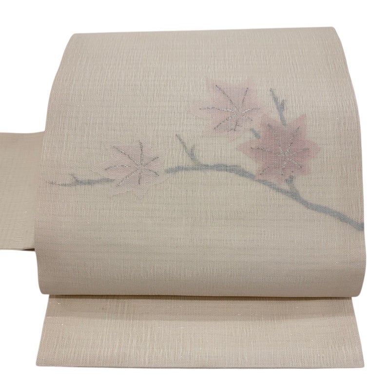 夏帯でございます。 セミフォーマルでお使いいただける名古屋帯でございます。 見る人に重たい印象を感じさせない女性ならではの、気品豊かな一品です。 表地と裏地所々帯芯所々に小さなシミ、お太鼓所々と前柄所々に銀糸の変色がございます。 リユース品としては良い状態で、まだまだご活用頂けると思われます。 ※なお、厳しく商品の状態確認を行っておりますが、記載の汚れ以外にも見落とし箇所がある可能性がある旨ご了承いただけますと幸いです。 沢山の商品の中からご覧いただき誠にありがとうございます。