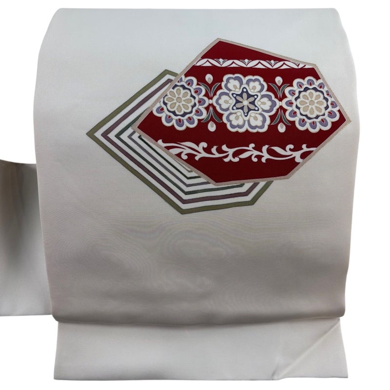 【名古屋帯】 白系 クリーム 優品 B 帯丈366cm~400cm -3980 二万以下