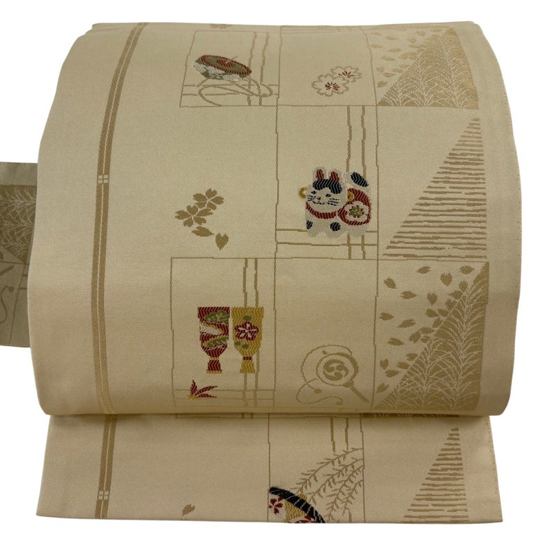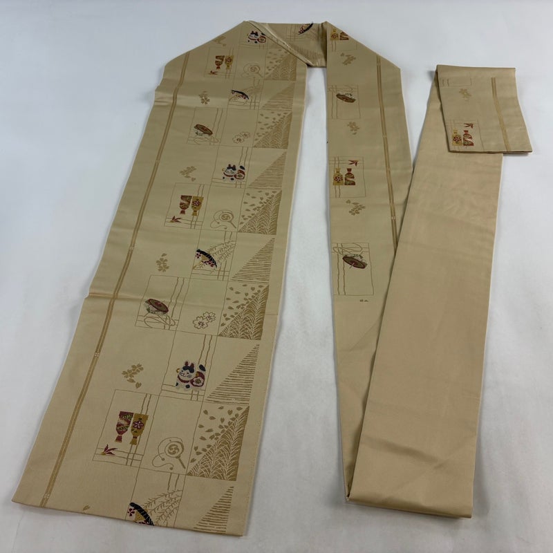【名古屋帯】 白系 ベージュ 優品 B 帯丈355cm以下 -3980 二万以下