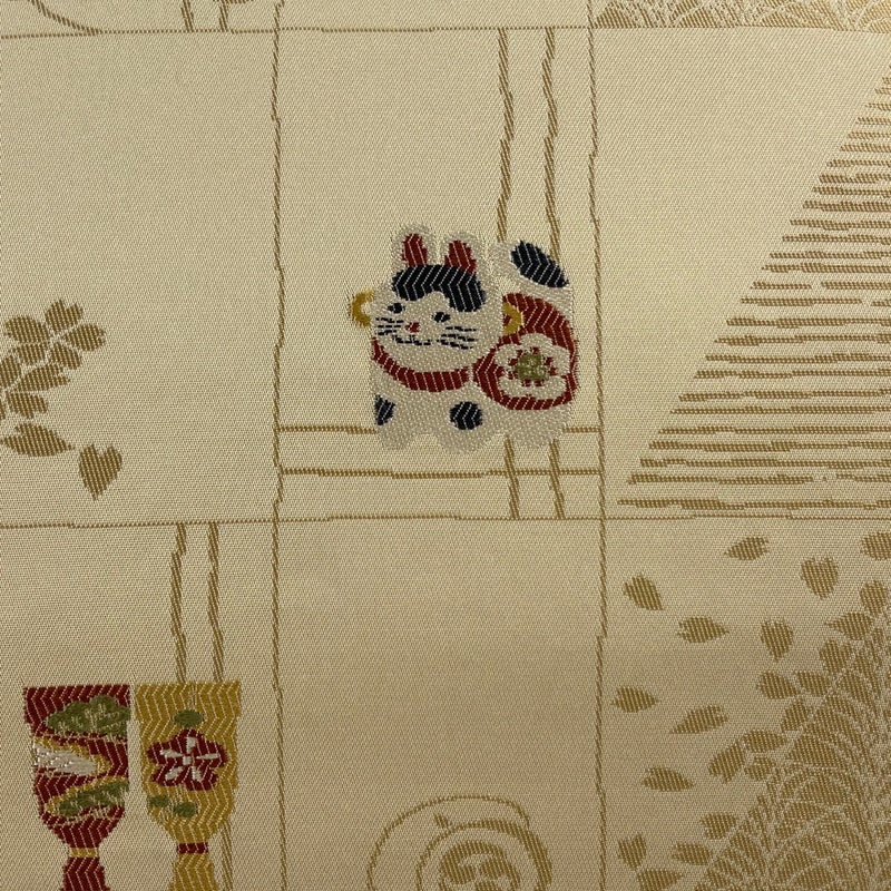 普段使いでお使いいただける名古屋帯でございます。 カジュアルな装いに合わせてお使いください。 締め跡がございます。 表地や前柄など所々に刺繍糸のほつれがございます。 裏地所々に生地のヨレがございます。 リユース品としては良い状態で、まだまだご活用頂けると思われます。 ※なお、厳しく商品の状態確認を行っておりますが、記載の汚れ以外にも見落とし箇所がある可能性がある旨ご了承いただけますと幸いです。 沢山の商品の中からご覧いただき誠にありがとうございます。