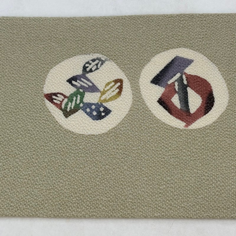 【名古屋帯】 灰色系 灰緑 優品 B 帯丈356cm~365cm -3980 二万以下