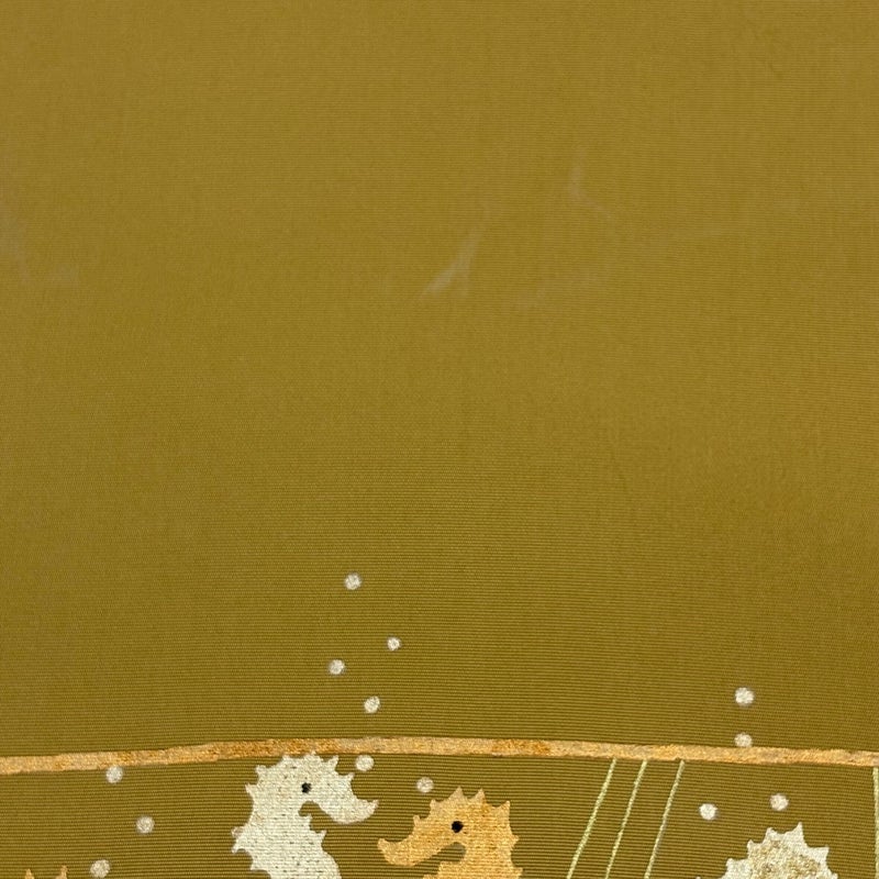 セミフォーマルでお使いいただける名古屋帯でございます。 見る人に重たい印象を感じさせない女性ならではの、気品豊かな一品です。 締め跡がございます。 表地所々にヤケ、お太鼓柄付近にシミ、お太鼓垂境間所々に汚れ、お太鼓柄部分と前柄柄部分に金銀彩の変色がございます。 裏地の手先付近に生地の傷み、裏地所々にヤケ、裏地に小さなシミ、裏地に金銀彩の変色がございます。 リユース品としては良い状態で、まだまだご活用頂けると思われます。 ※なお、厳しく商品の状態確認を行っておりますが、記載の汚れ以外にも見落とし箇所がある可能性がある旨ご了承いただけますと幸いです。 沢山の商品の中からご覧いただき誠にありがとうございます。 【PR2】