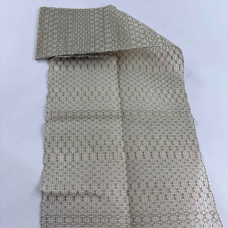 夏帯でございます。 普段使いでお使いいただける名古屋帯でございます。 カジュアルな装いに合わせてお使いください。 強い締め跡がございます。 帯縁に生地のヨレ、前柄お太鼓間にシワがございます。 リユース品としては良い状態で、まだまだご活用頂けると思われます。 ※なお、厳しく商品の状態確認を行っておりますが、記載の汚れ以外にも見落とし箇所がある可能性がある旨ご了承いただけますと幸いです。 沢山の商品の中からご覧いただき誠にありがとうございます。