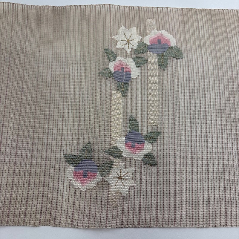 夏帯でございます。 セミフォーマルでお使いいただける名古屋帯でございます。 見る人に重たい印象を感じさせない女性ならではの、気品豊かな一品です。 表地所々にヤケ、お太鼓など所々にシミがございます。 ご購入の際はその点ご留意ください。 ※なお、厳しく商品の状態確認を行っておりますが、記載の汚れ以外にも見落とし箇所がある可能性がある旨ご了承いただけますと幸いです。 沢山の商品の中からご覧いただき誠にありがとうございます。