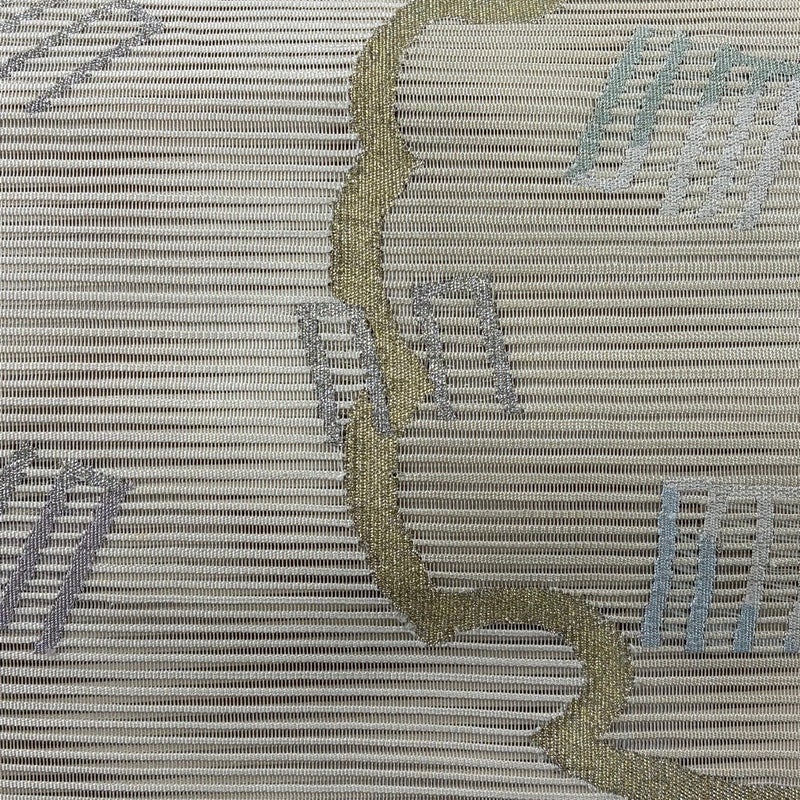 夏帯でございます。 セミフォーマルでお使いいただける名古屋帯でございます。 見る人に重たい印象を感じさせない女性ならではの、気品豊かな一品です。 締め跡がございます。 お太鼓所々と手先前柄間所々にシミ、締め跡沿いに汚れ、表地所々にシワ、お太鼓所々に若干の金銀糸の変色、垂先に生地のたわみがございます。 リユース品としては良い状態で、まだまだご活用頂けると思われます。 ※なお、厳しく商品の状態確認を行っておりますが、記載の汚れ以外にも見落とし箇所がある可能性がある旨ご了承いただけますと幸いです。 沢山の商品の中からご覧いただき誠にありがとうございます。
