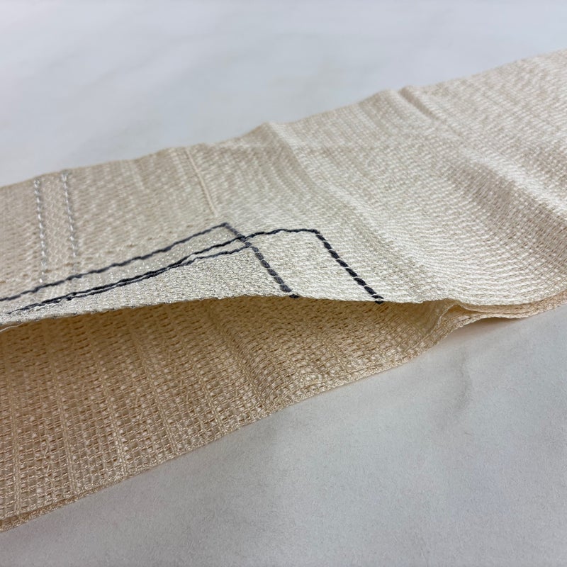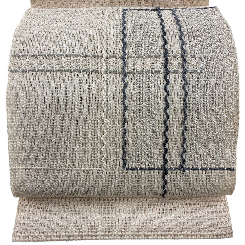 夏帯でございます。 セミフォーマルでお使いいただける名古屋帯でございます。 見る人に重たい印象を感じさせない女性ならではの、気品豊かな一品です。 締め跡がございます。 帯縁所々に糸の飛び出しがございます。 お太鼓の帯縁が開いております。 リユース品としては良い状態で、まだまだご活用頂けると思われます。 ※なお、厳しく商品の状態確認を行っておりますが、記載の汚れ以外にも見落とし箇所がある可能性がある旨ご了承いただけますと幸いです。 沢山の商品の中からご覧いただき誠にありがとうございます。 【OZ1】