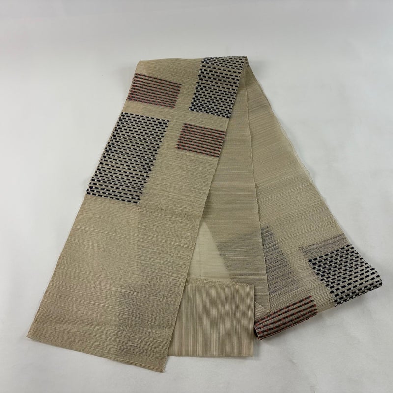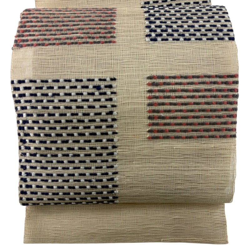 普段使いでお使いいただける夏物の名古屋帯でございます。 カジュアルな装いに合わせてお使いください。 締め跡がございます。 前柄に小さなシミ、締め跡沿いに汚れ、垂先と手先にシワ、お太鼓と前柄に毛羽立ちがございます。 リユース品としては良い状態で、まだまだご活用頂けると思われます。 ※なお、厳しく商品の状態確認を行っておりますが、記載の汚れ以外にも見落とし箇所がある可能性がある旨ご了承いただけますと幸いです。 沢山の商品の中からご覧いただき誠にありがとうございます。