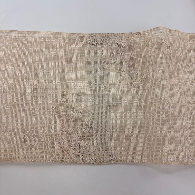 夏帯でございます。 普段使いでお使いいただける名古屋帯でございます。 カジュアルな装いに合わせてお使いください。 締め跡がございます。 手先前柄間にヤケ、お太鼓所々と前柄所々に薄汚れがございます。 リユース品としては良い状態で、まだまだご活用頂けると思われます。 ※なお、厳しく商品の状態確認を行っておりますが、記載の汚れ以外にも見落とし箇所がある可能性がある旨ご了承いただけますと幸いです。 沢山の商品の中からご覧いただき誠にありがとうございます。
