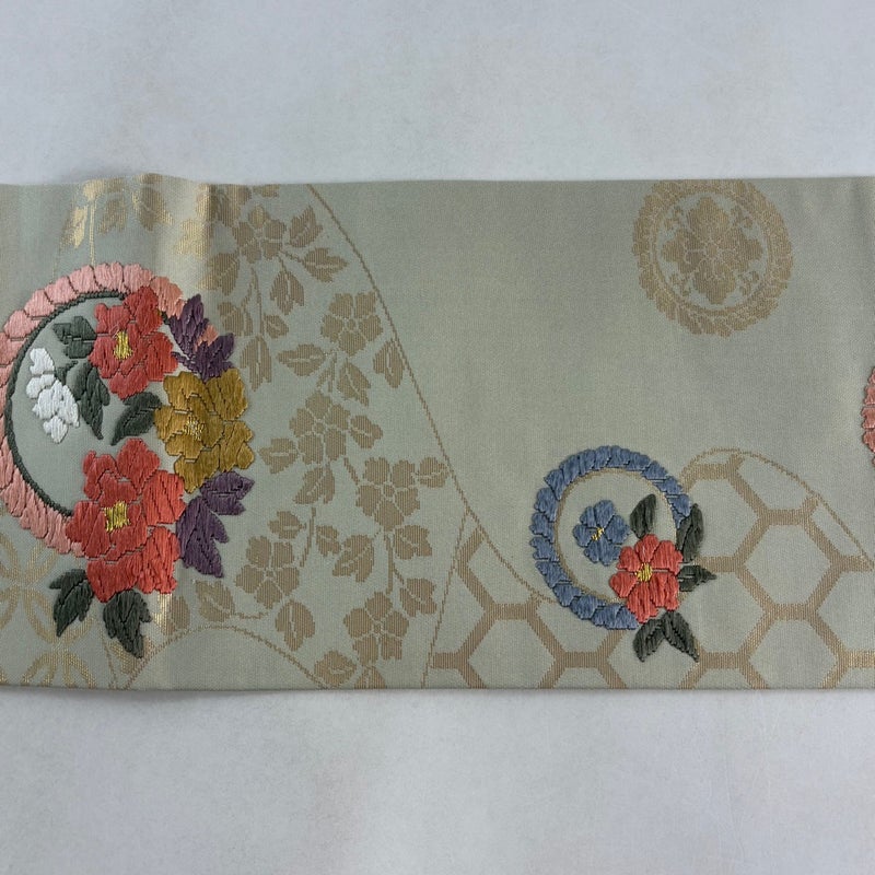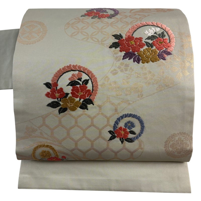 セミフォーマルでお使いいただける名古屋帯でございます。 見る人に重たい印象を感じさせない女性ならではの、気品豊かな一品です。 締め跡がございます。 垂先に糸のほつれ、前柄に刺繍糸のゆるみがございます。 リユース品としては良い状態で、まだまだご活用頂けると思われます。 ※なお、厳しく商品の状態確認を行っておりますが、記載の汚れ以外にも見落とし箇所がある可能性がある旨ご了承いただけますと幸いです。 沢山の商品の中からご覧いただき誠にありがとうございます。