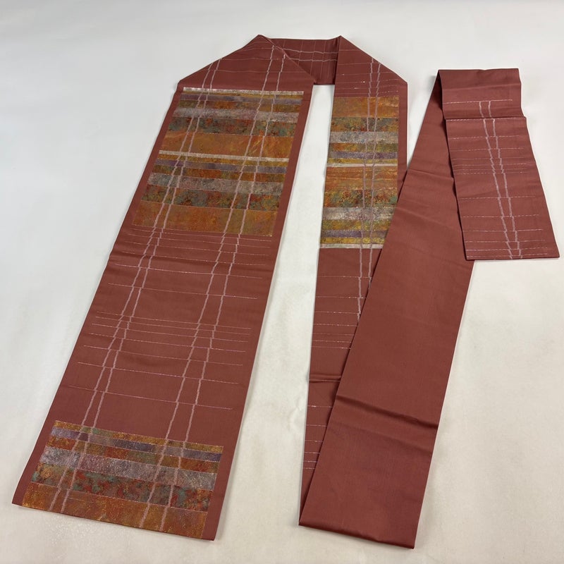 【名古屋帯】 赤系 小豆色 優品 B 帯丈366cm~400cm -3980 二万以下