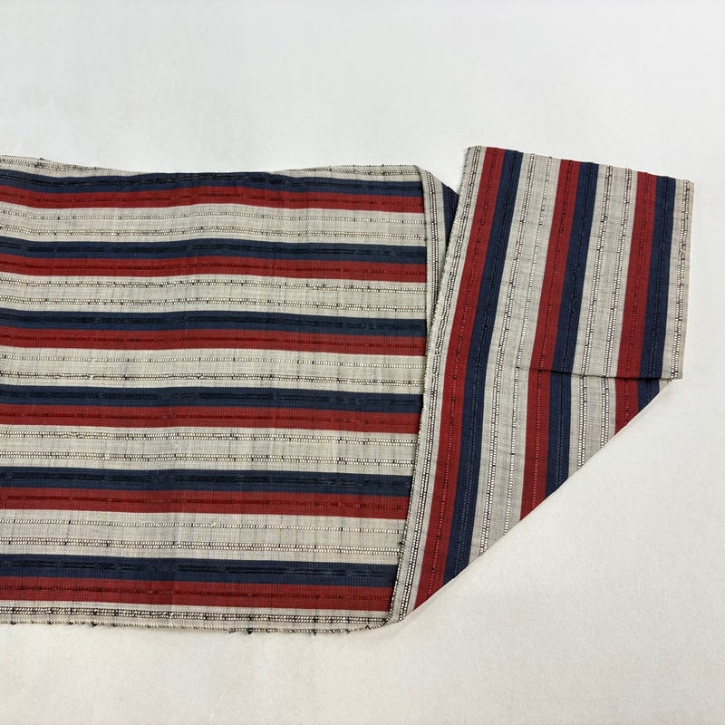 夏帯でございます。 普段使いでお使いいただける名古屋帯でございます。 カジュアルな装いに合わせてお使いください。 帯縁に生地のヨレ、前柄お太鼓間にほつれがございます。 リユース品としては良い状態で、まだまだご活用頂けると思われます。 ※なお、厳しく商品の状態確認を行っておりますが、記載の汚れ以外にも見落とし箇所がある可能性がある旨ご了承いただけますと幸いです。 沢山の商品の中からご覧いただき誠にありがとうございます。