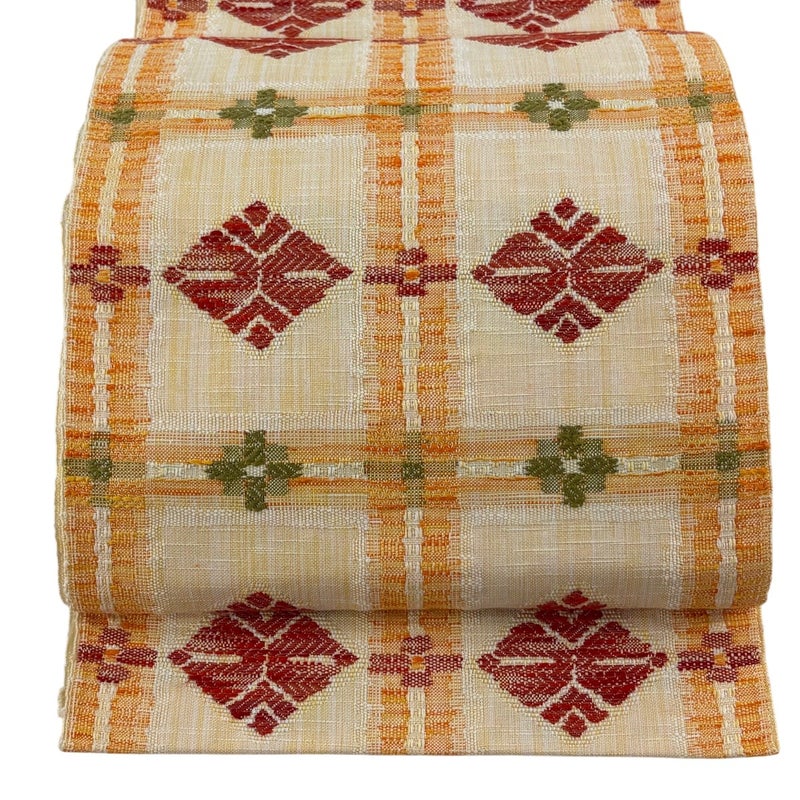 普段使いでお使いいただける名古屋帯でございます。 カジュアルな装いに合わせてお使いください。 締め跡がございます。 帯縁に生地のヨレ、前柄お太鼓間にほつれがございます。 裏地にシワがございます。 リユース品としては良い状態で、まだまだご活用頂けると思われます。 ※なお、厳しく商品の状態確認を行っておりますが、記載の汚れ以外にも見落とし箇所がある可能性がある旨ご了承いただけますと幸いです。 沢山の商品の中からご覧いただき誠にありがとうございます。 ※保管によるにおい移りがございます。