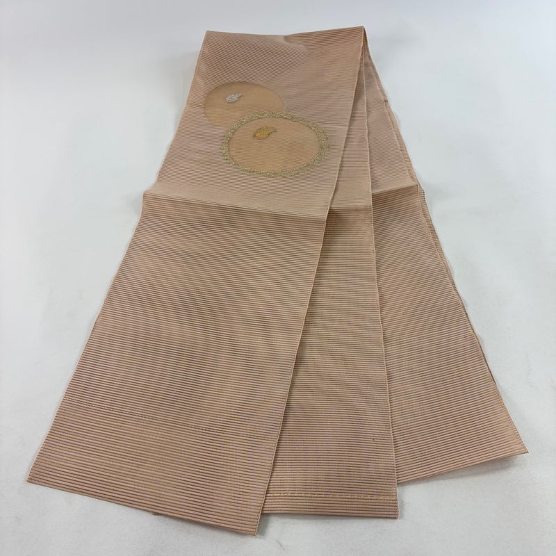 【名古屋帯】 赤系 ピンクベージュ 秀品 C 帯丈356cm~365cm 7990-9980 二万以下